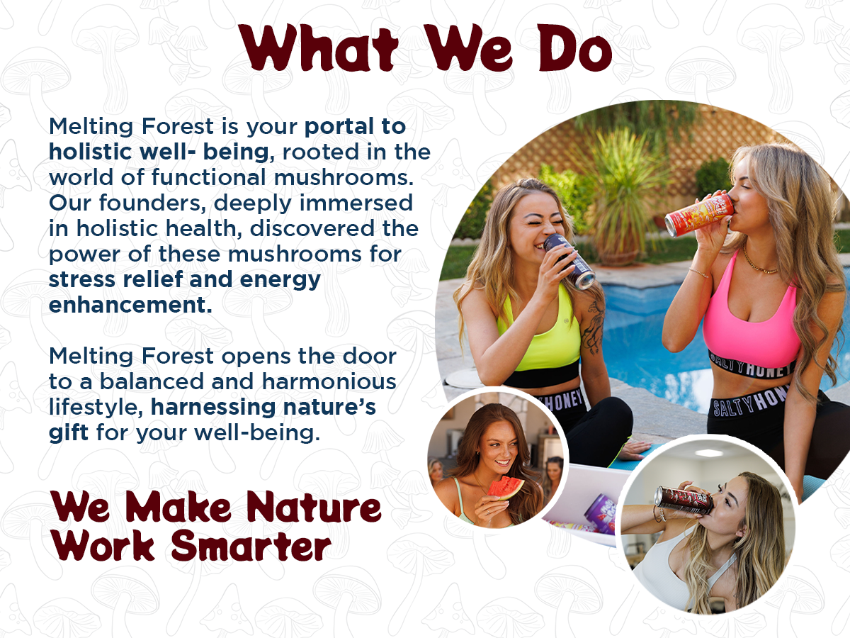 Melting Forest is a wellness brand that creates adaptogen-based gummies, drinks, and mushroom coffee designed to support focus, energy, mood, and stress relief — all through natural ingredients.