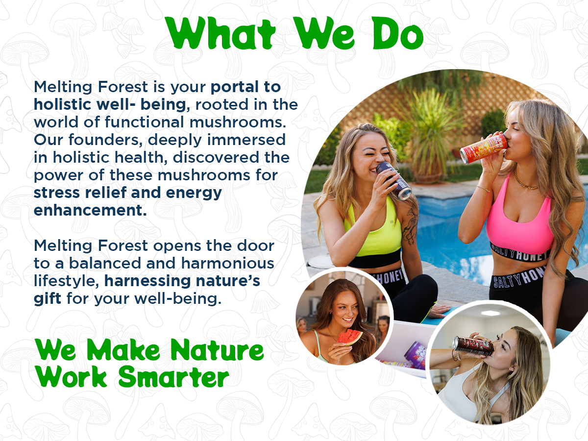 Melting Forest is a wellness brand that creates adaptogen-based gummies, drinks, and mushroom coffee designed to support focus, energy, mood, and stress relief — all through natural ingredients.