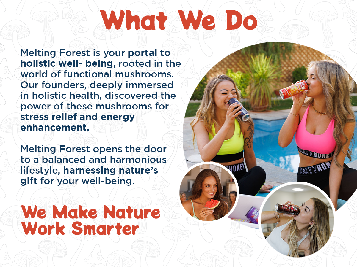 Melting Forest is a wellness brand that creates adaptogen-based gummies, drinks, and mushroom coffee designed to support focus, energy, mood, and stress relief — all through natural ingredients.