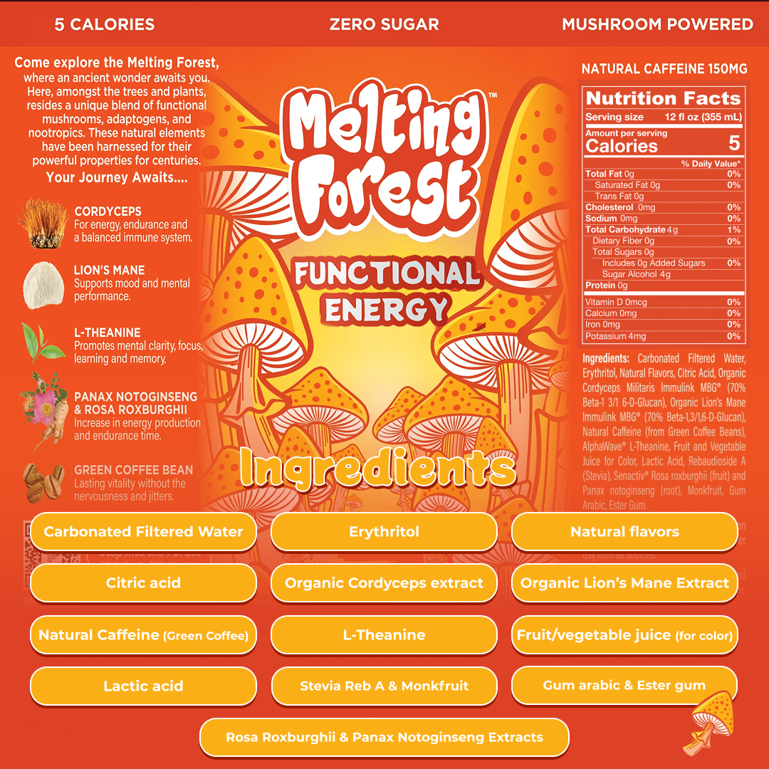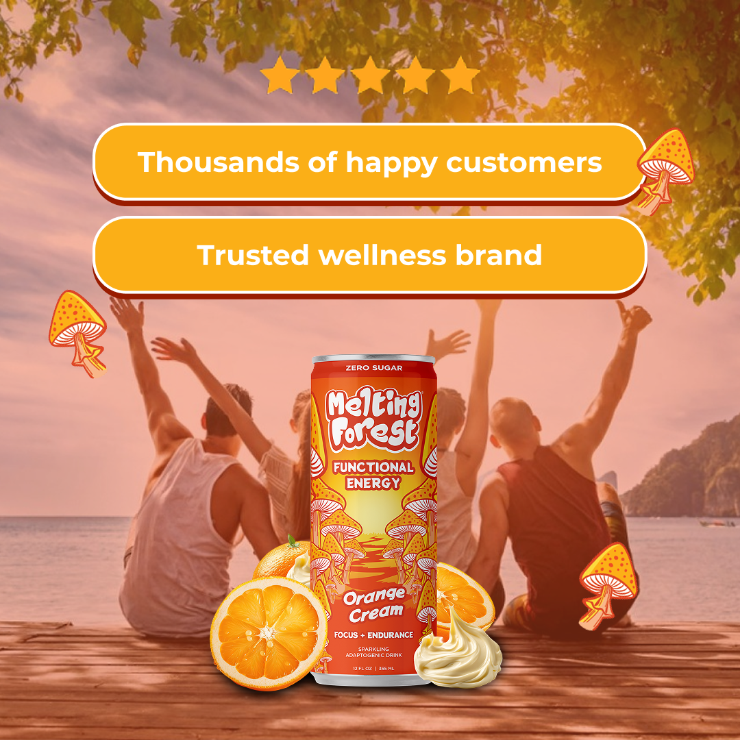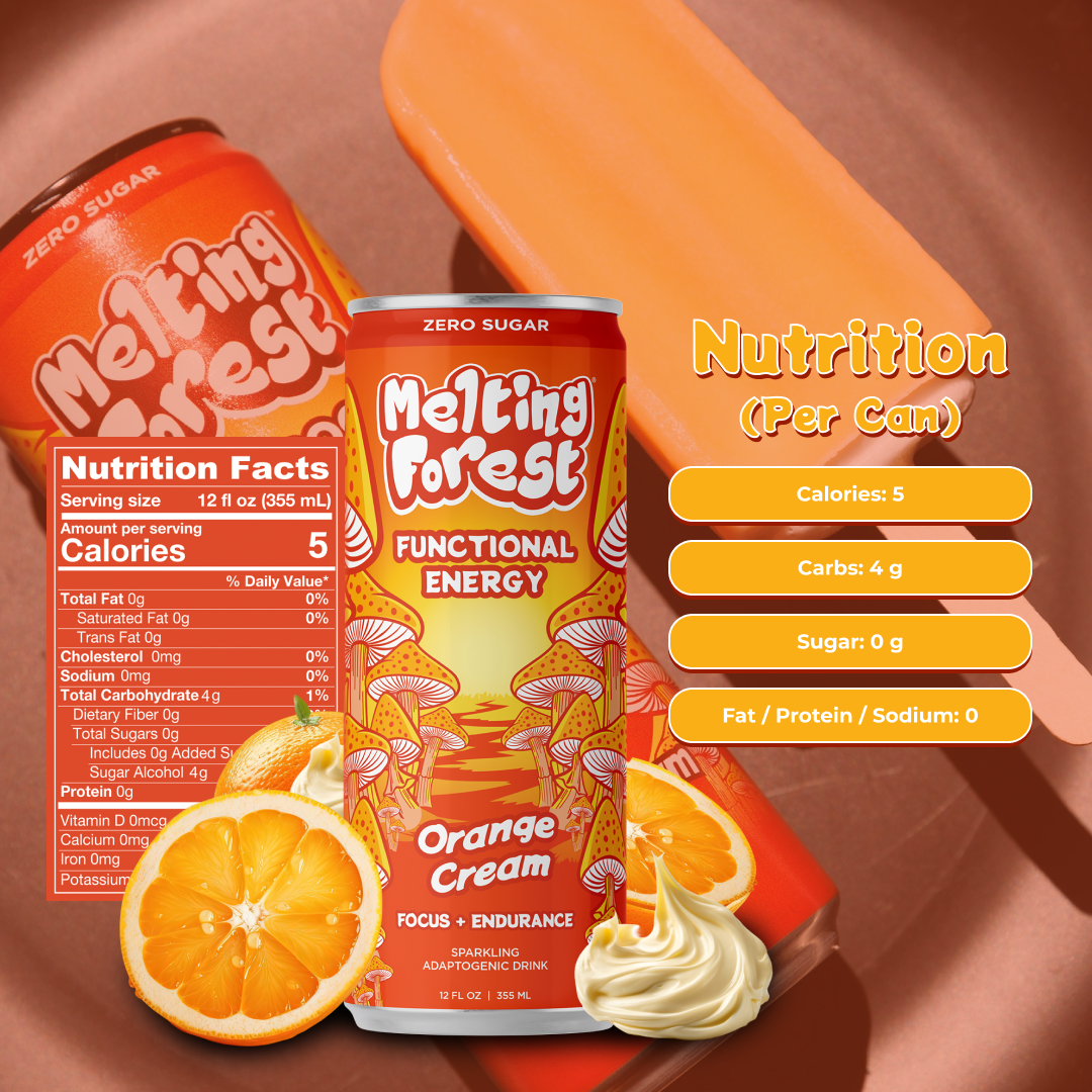 12 packs | Adaptogens & Nootropics Sparkling DrinksMelting Forest Orange Cream Energy Drink is a delightful, energizing beverage that combines the nostalgic flavors of creamy orange with a modern, health-conscious twist. This drink offers the luscious, citrusy sweetness...