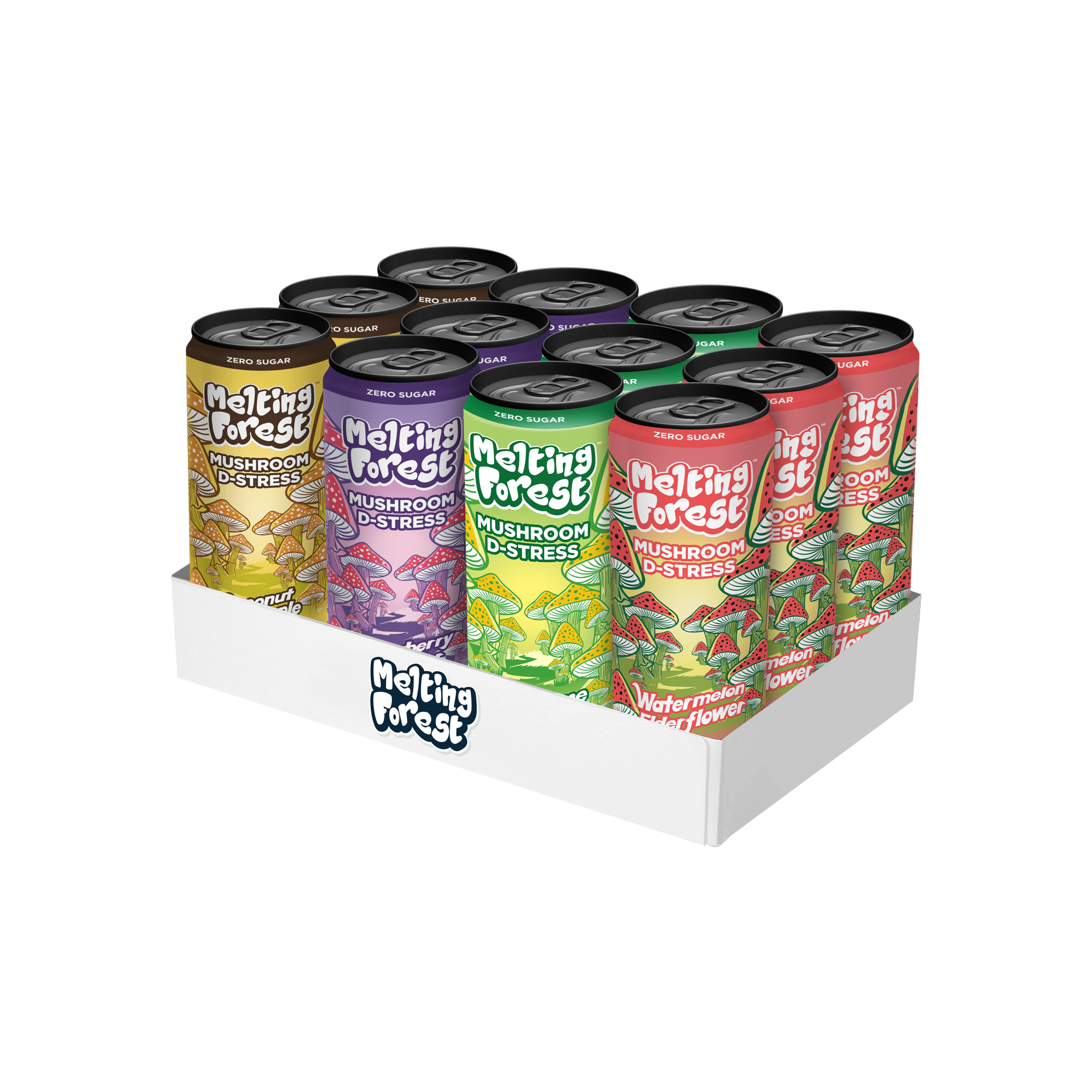 12 packs | Adaptogens & Nootropics Sparkling DrinksIntroducing the "Melting Forest D-Stress Variety Pack Case," featuring a selection of soothing beverages designed to help you unwind. This pack includes three bottles each of our four unique flavors: